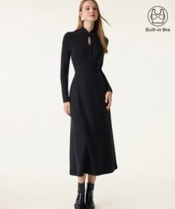 ProWarm Long Sleeves Mockneck Tucks Midi Dress