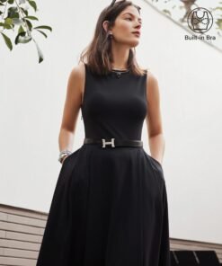 Boatneck Bamboo Ponte Brami Midi Dress with Pockets