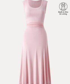 Scoop Neck Side Ruched New Airy Brami Midi Dress