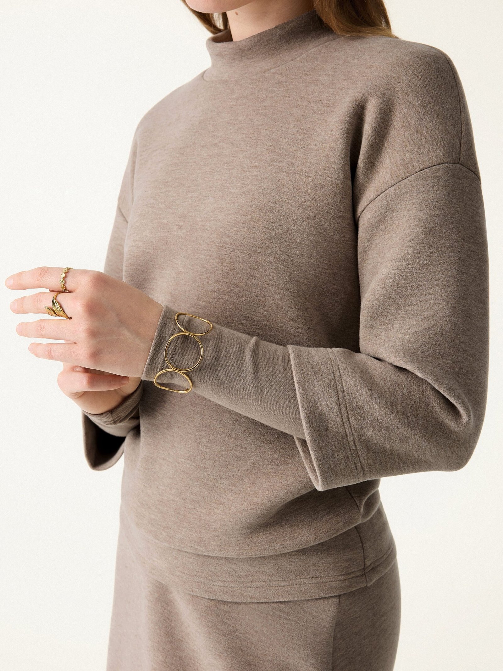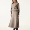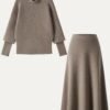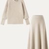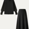 2Pcs Set FuzzLuxe Mockneck Sleeve-Warmer Top & Midi A-line Circle Skirt
