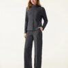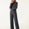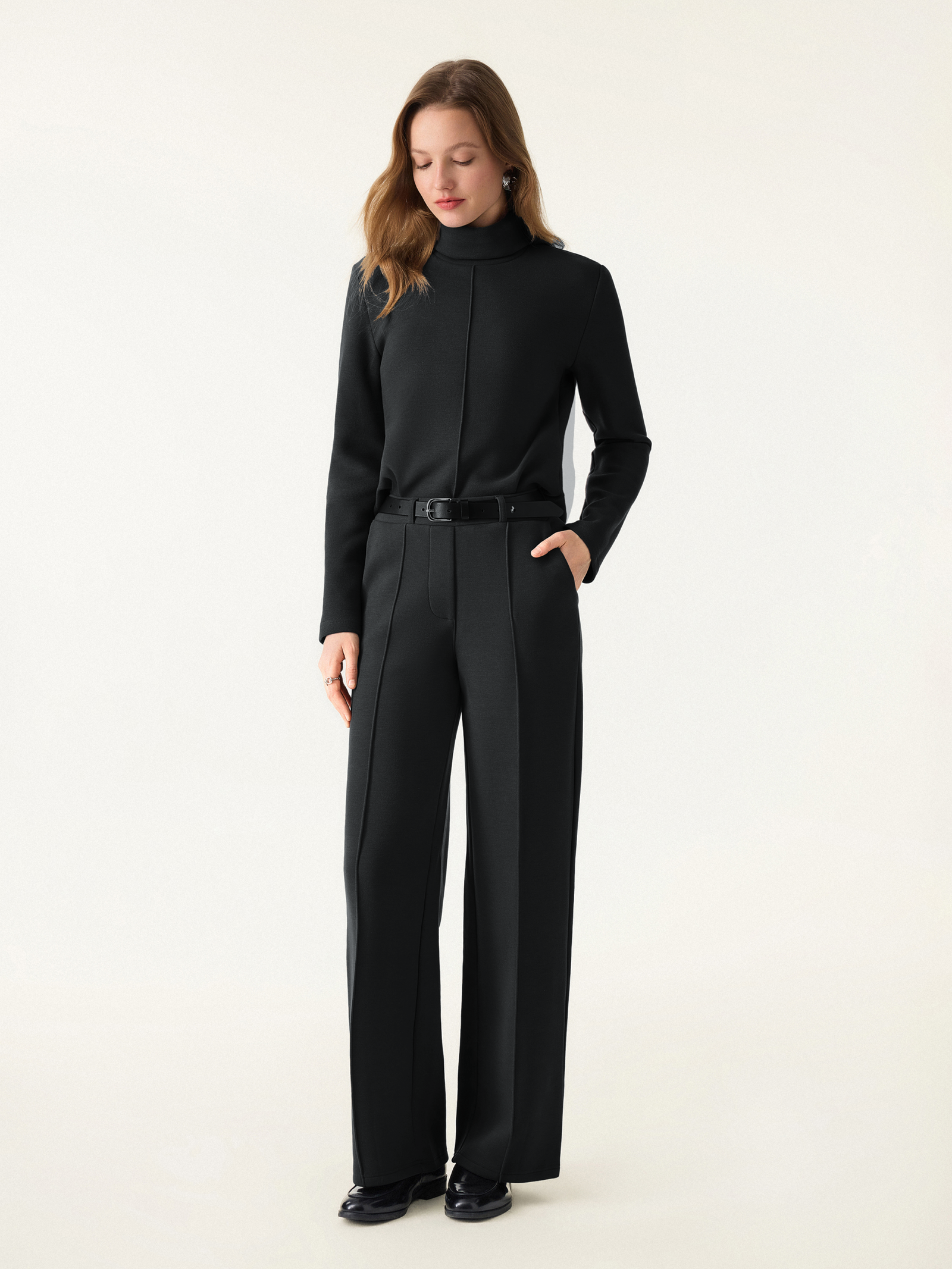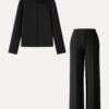 2Pcs Set FuzzLuxe Turtleneck Top & Regular High Waisted Straight Leg Pull On Pant