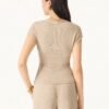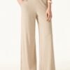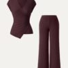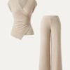 2Pcs Set Lyocell Wool Surplice Cap Sleeve Top & Mid Rise Wide Leg Pants with Pockets