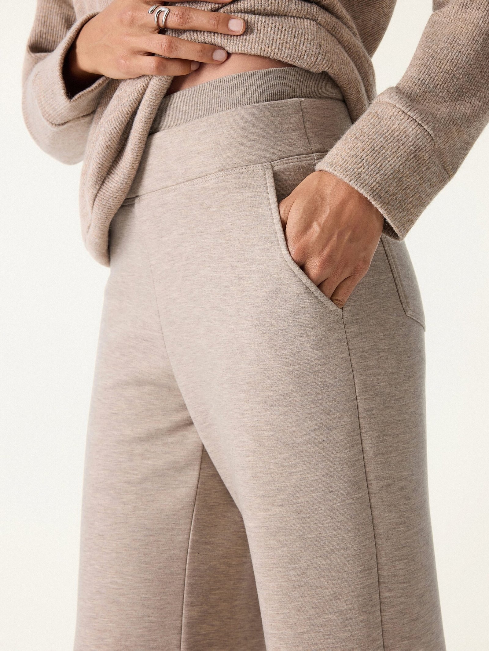 2Pcs Set Petite Double Waistband Straight Pants & V-Neck Batwing Sleeve Pullover