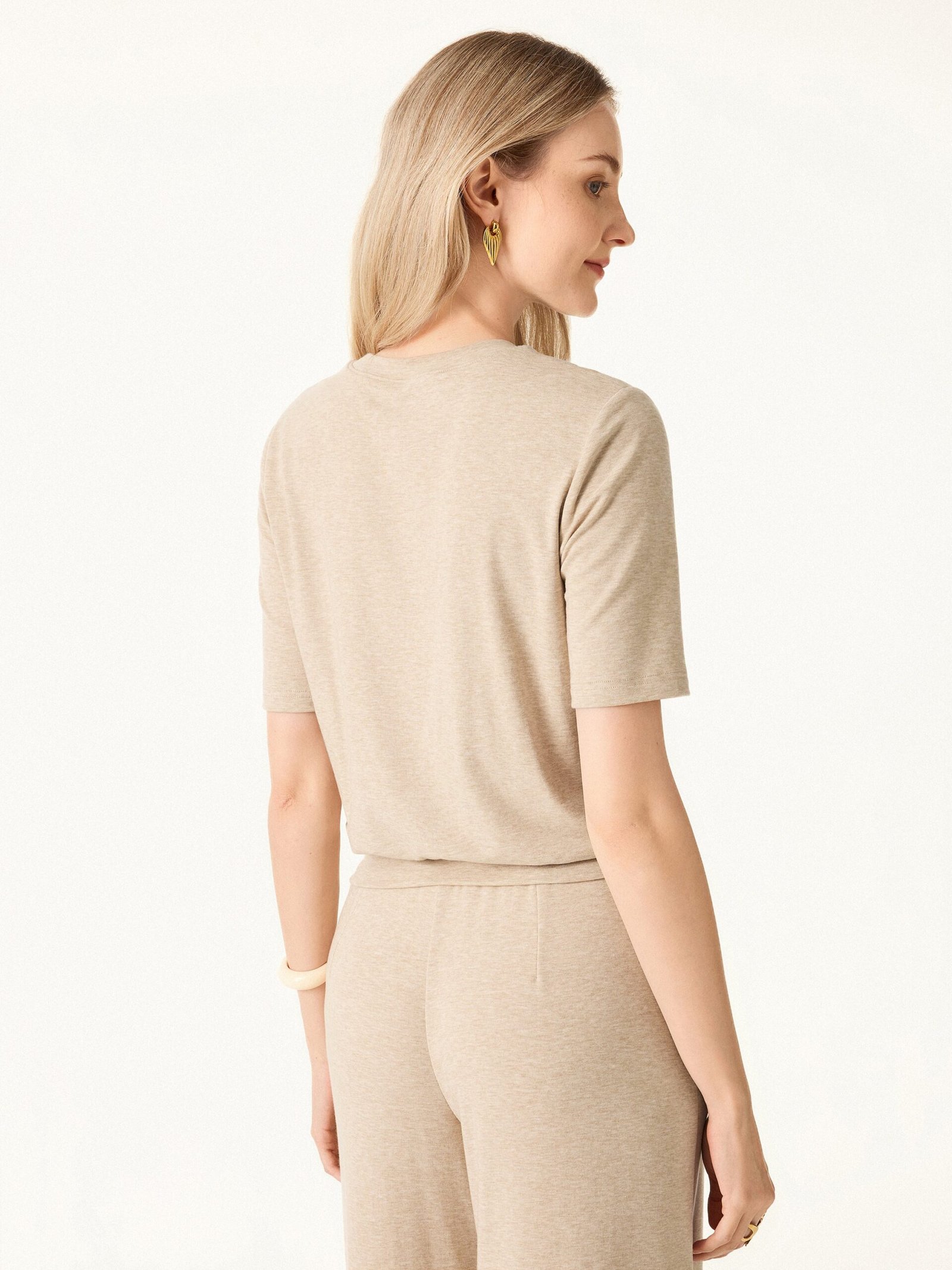 2Pcs Set Petite Mid Rise Wide Leg Pants with Pockets & Crewneck Brami with Banded Hem