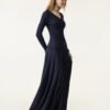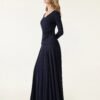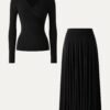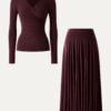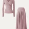 2Pcs Set Surplice Ruched Long Sleeve & Godet Hem Pull-on Maxi Skirt