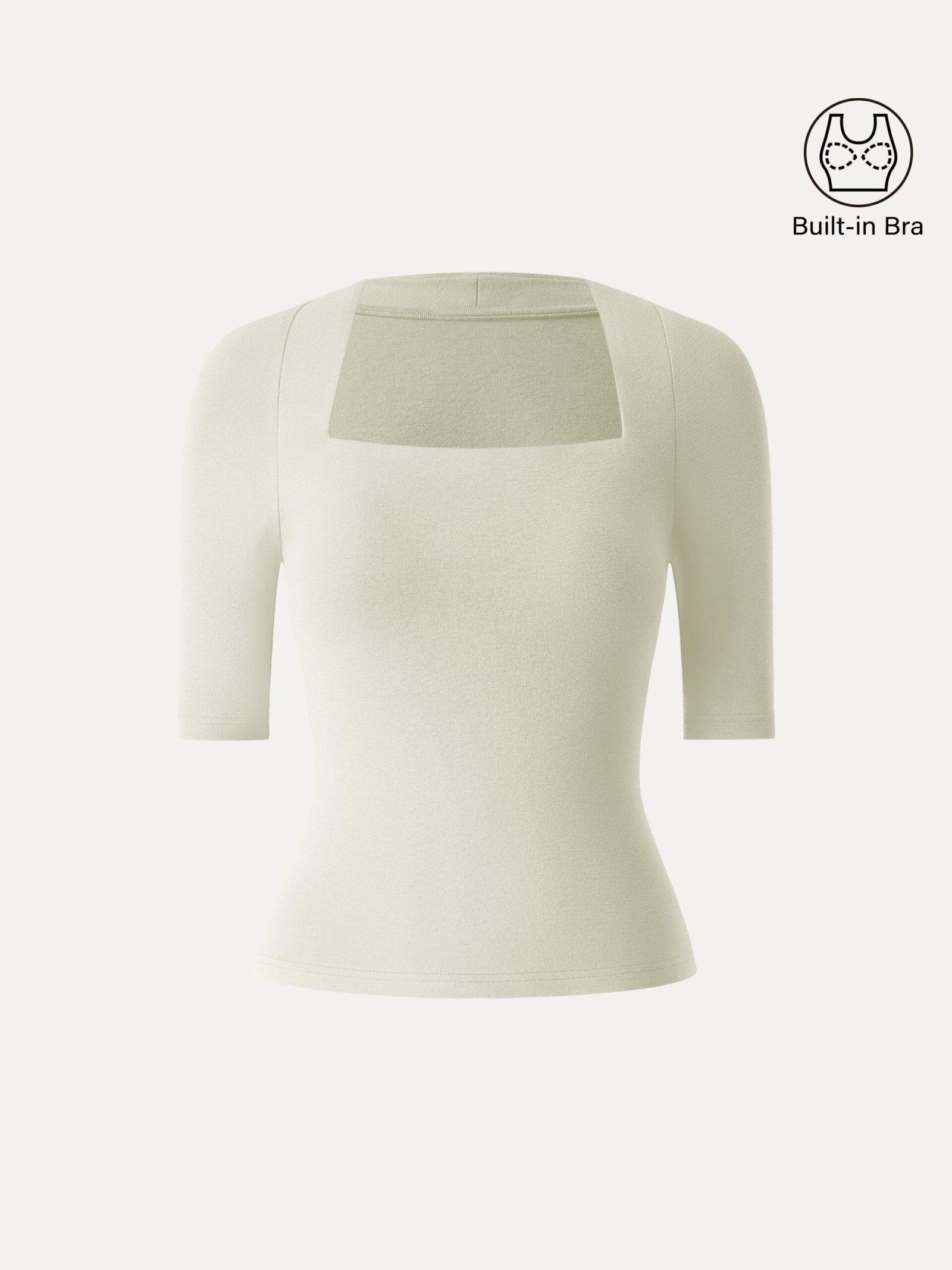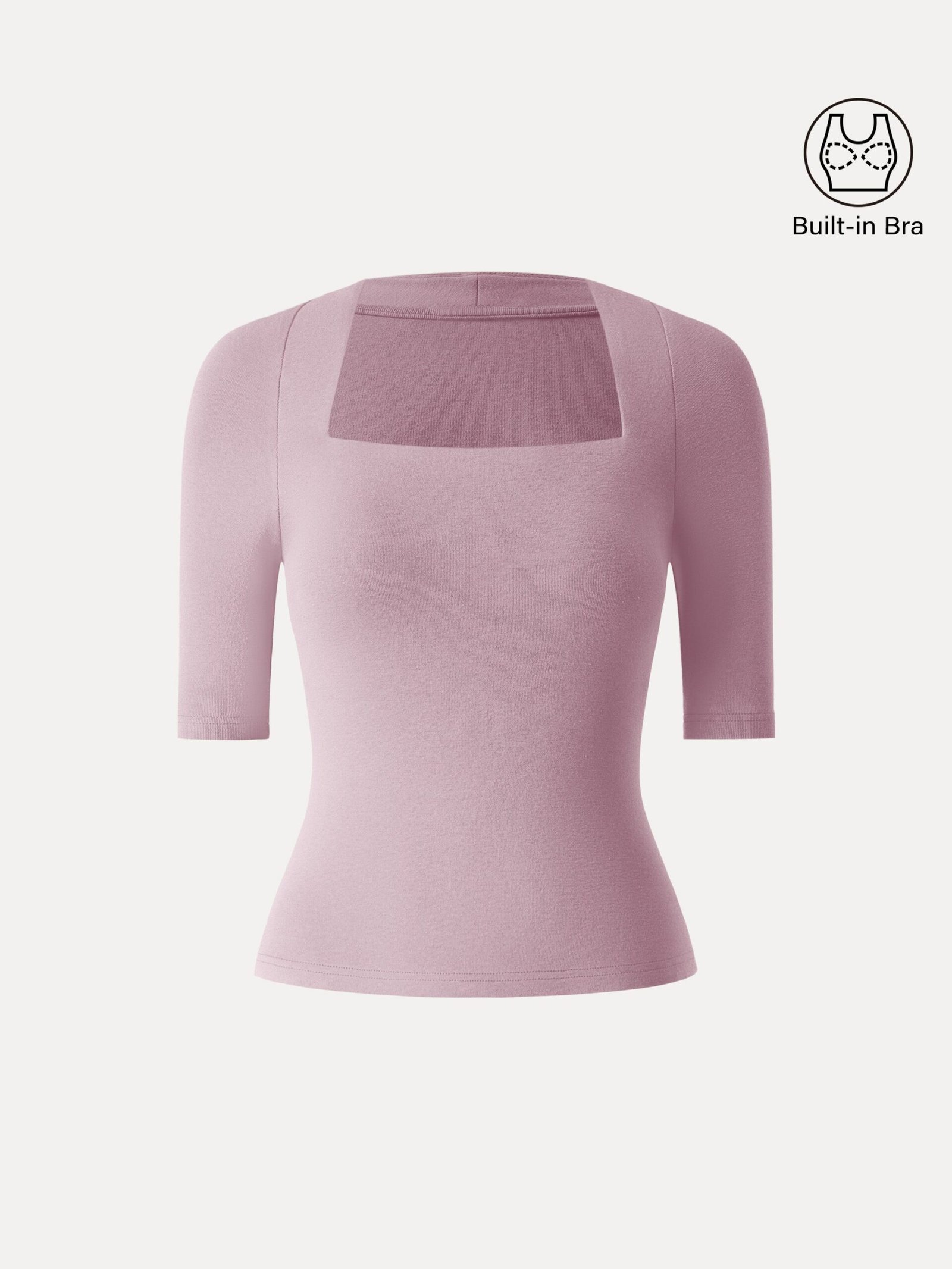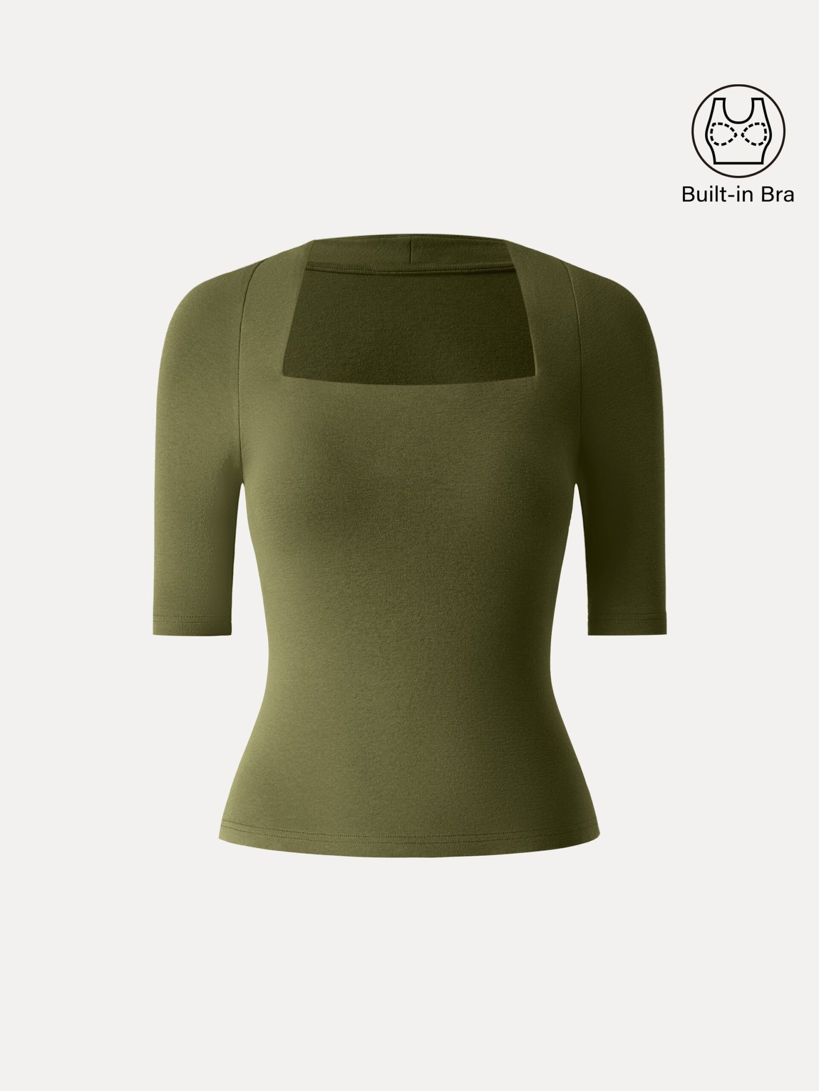 Cotton Lyocell Trapeze Neck Elbow Sleeve Brami