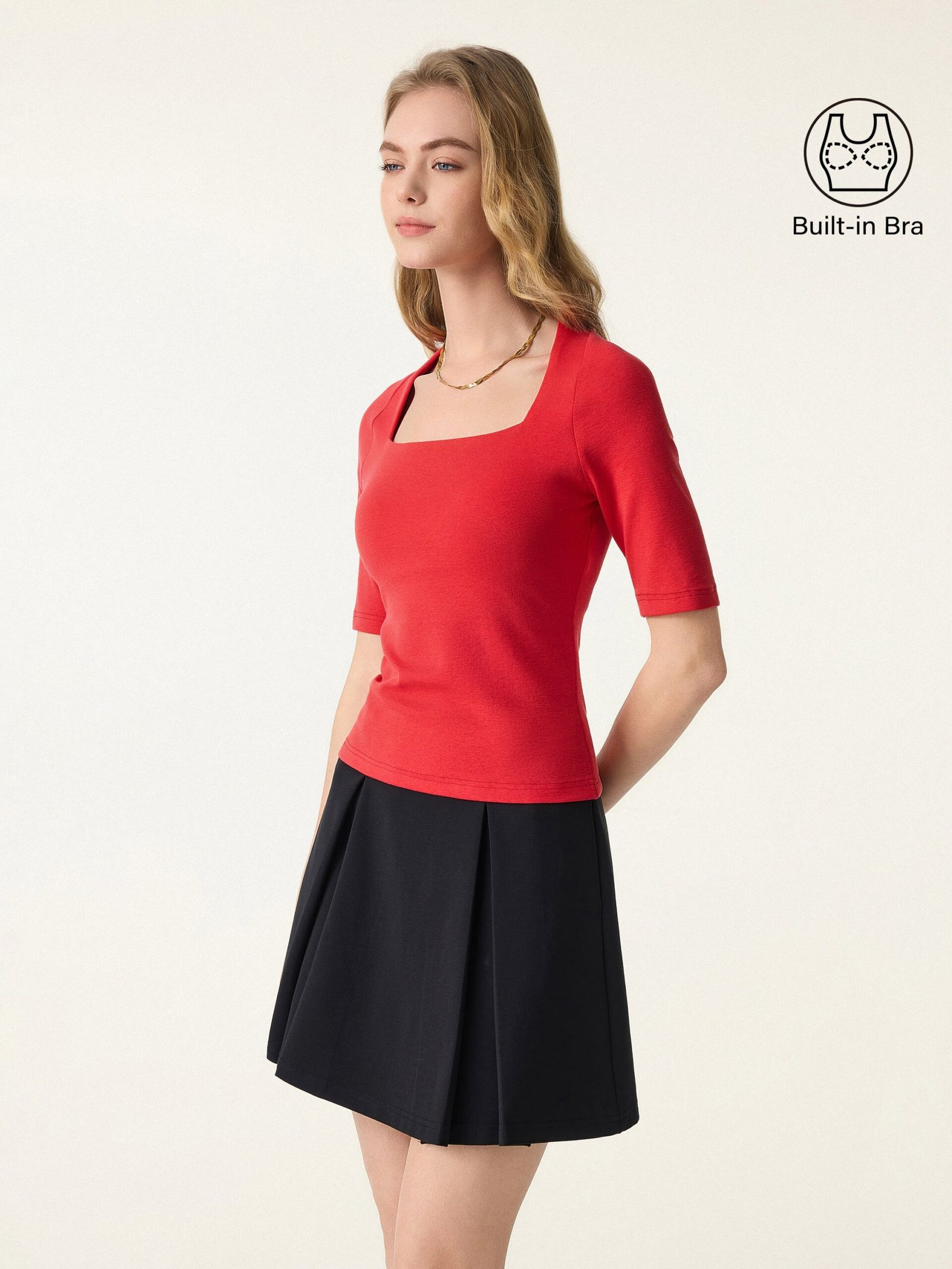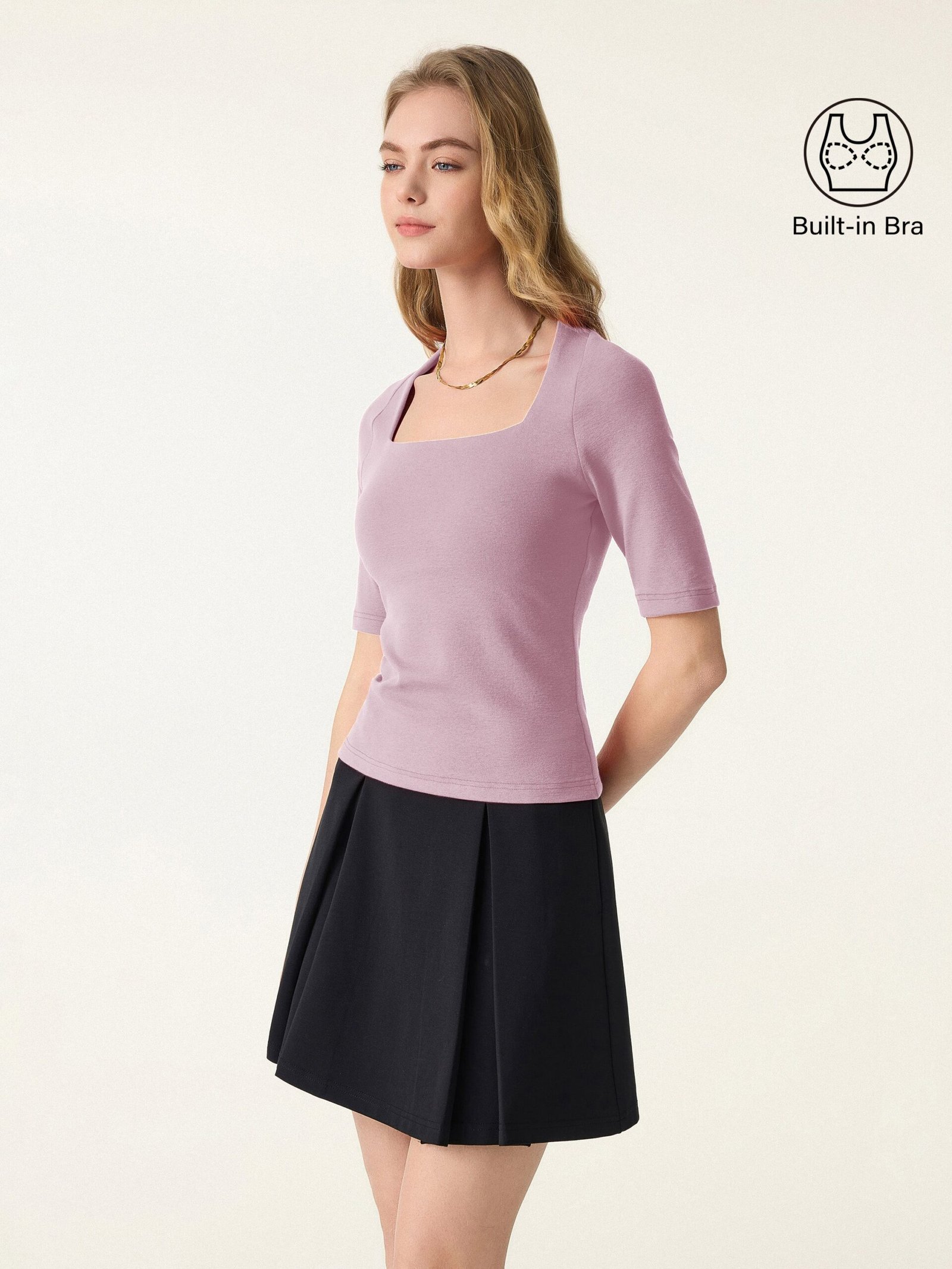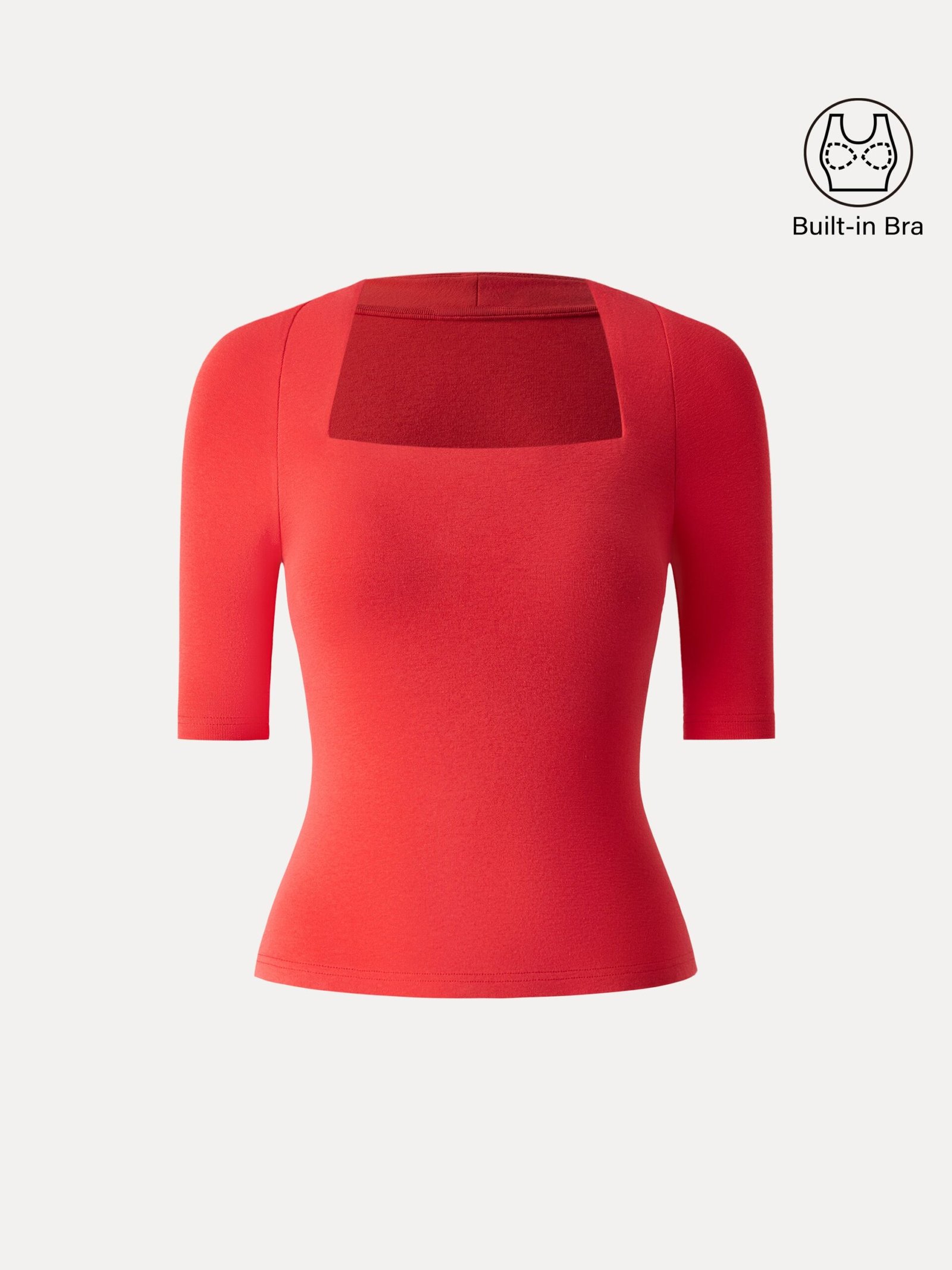 Cotton Lyocell Trapeze Neck Elbow Sleeve Brami
