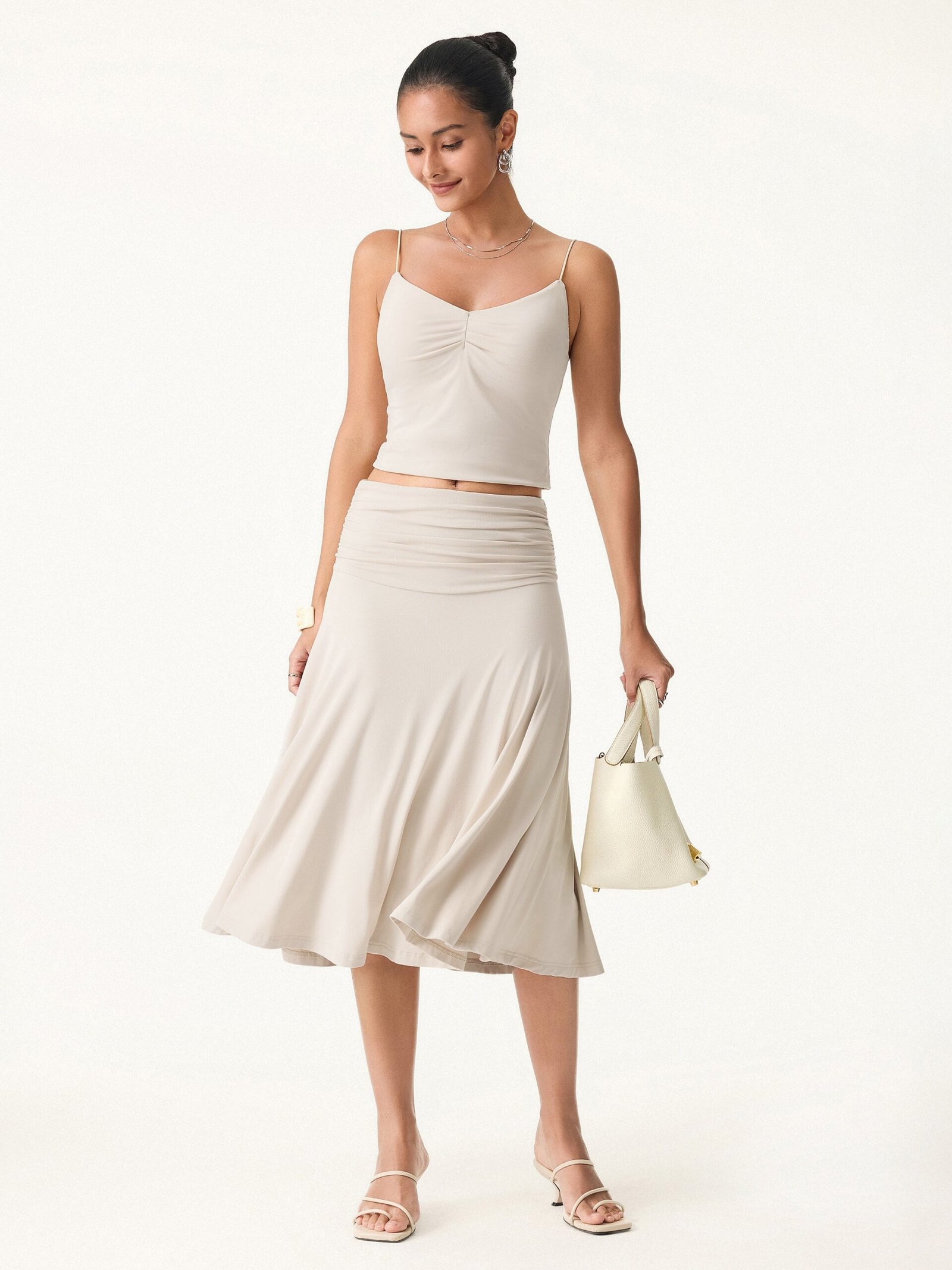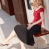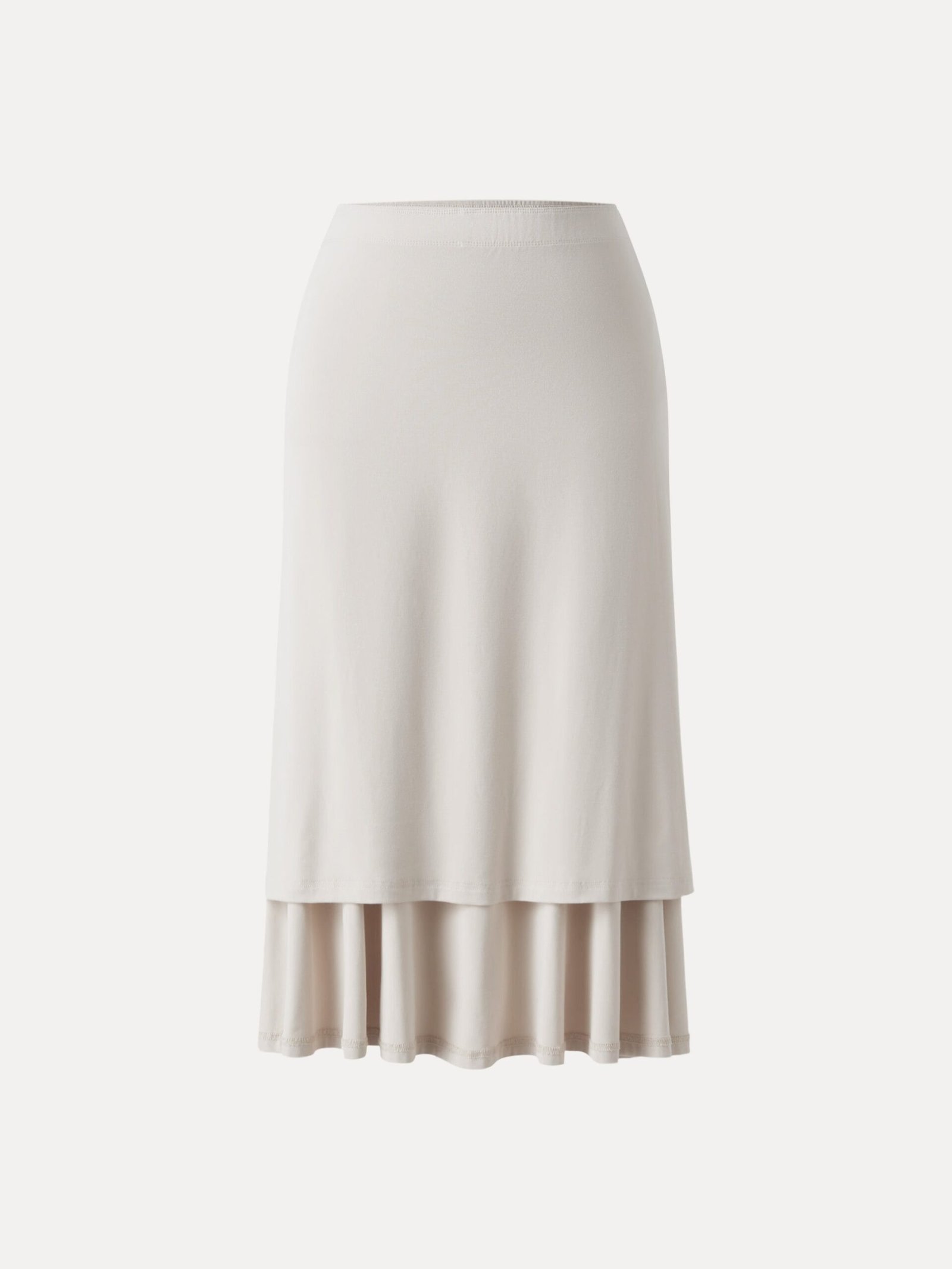 This skirt is designed for comfortable everyday wear with a clean and balanced silhouette. The fabric feels smooth and supportive, allowing the skirt to hold its shape while remaining easy to move in. Its construction provides a flattering fit through the waist and hips without feeling restrictive. The length and cut make it suitable for casual outings, work settings, or relaxed social occasions. It can be styled with simple tops or layered pieces, making it a practical and versatile wardrobe option.