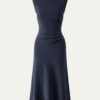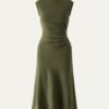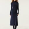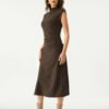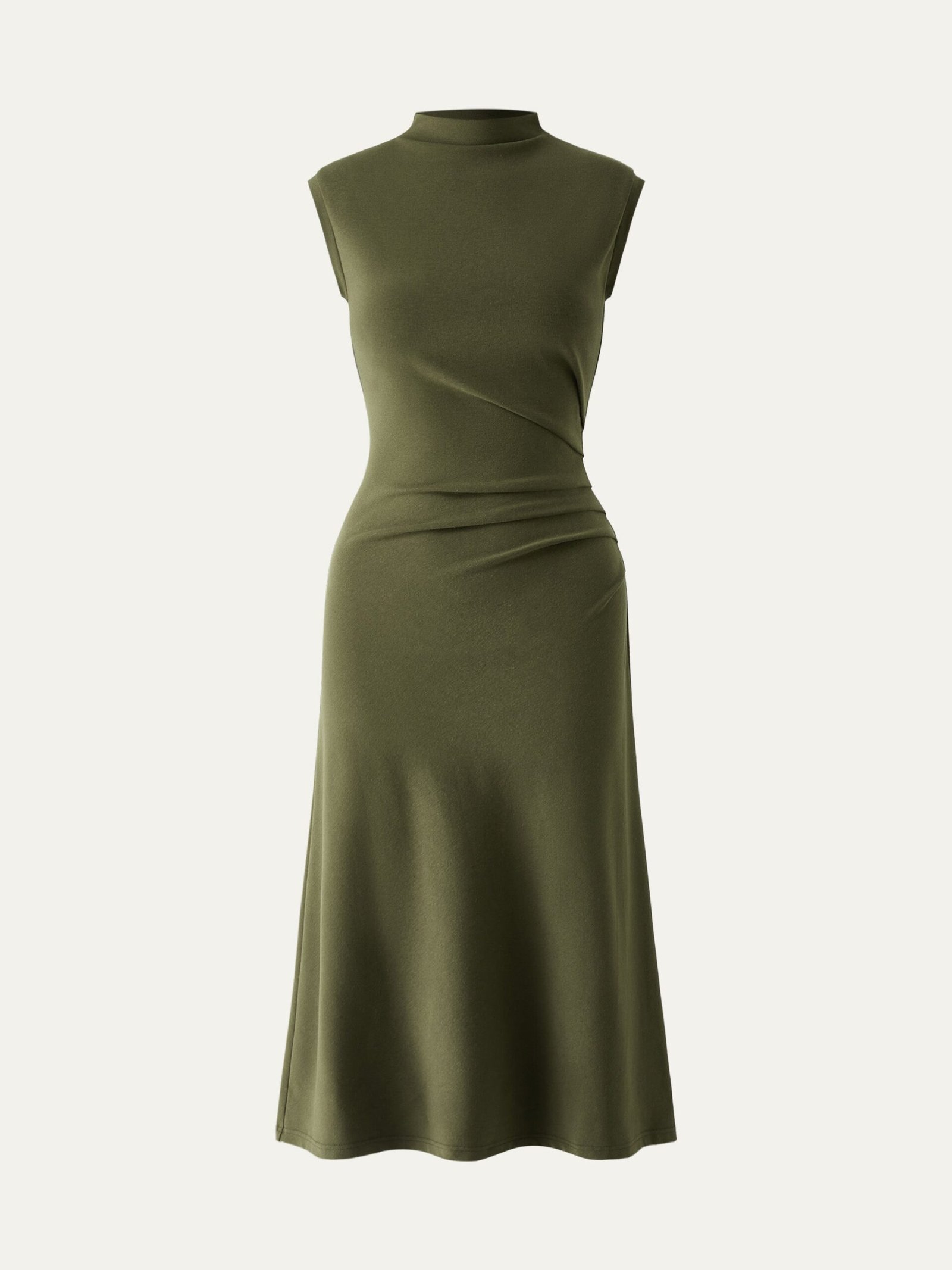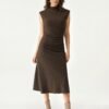Mockneck Tucks Midi Dress
