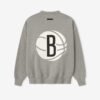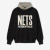 The Nets Sport Crewneck is crafted from core fleece, offering an elevated balance of softness, structure, and lasting comfort. Cut in a relaxed sport fit, it drapes with more ease through the body and extended length compared to the Essentials classic silhouette. The front features a bold puffer-print graphic “Nets Essentials ” alongside the authentic NBA logo, while the back showcases the official Brooklyn Nets logo. Additional features include kangaroo pocket, rib-knit at the collar, cuffs and waist hem. The signature rubberized Fear of God Essentials label accents the hood.