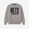The Nets Sport Crewneck is crafted from core fleece, offering an elevated balance of softness, structure, and lasting comfort. Cut in a relaxed sport fit, it drapes with more ease through the body and extended length compared to the Essentials classic silhouette. The front features a bold puffer-print graphic “Nets Essentials ” alongside the authentic NBA logo, while the back showcases the official Brooklyn Nets logo. Additional features include kangaroo pocket, rib-knit at the collar, cuffs and waist hem. The signature rubberized Fear of God Essentials label accents the hood.