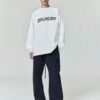 The 90s Long Sleeve Tee is cut from Ponte jersey, offering a soft feel with spandex for stretch comfort. Designed in an oversized 90s-inspired silhouette, it features exaggerated proportions with dropped shoulders for a relaxed drape that tapers to rib-knit cuffs. The front is defined by a metallic 3M print application of the “FEAR OF GOD ESSENTIALS” lockup. The signature rubberized Fear of God Essentials label at the collar.