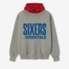The Sixers Sport Hoodie is crafted from core fleece, offering an elevated balance of softness, structure, and lasting comfort. Cut in a relaxed sport fit, it drapes with more ease through the body and extended length compared to the Essentials classic silhouette. The front features a bold puff-print graphic “Sixers Essentials ” alongside the authentic NBA logo, while the back showcases the official Philadelphia Sixers graphic logo. Additional features include contrasting hood, side pockets, rib-knit at the cuffs and waist hem. The signature rubberized Fear of God Essentials label accents the hood.