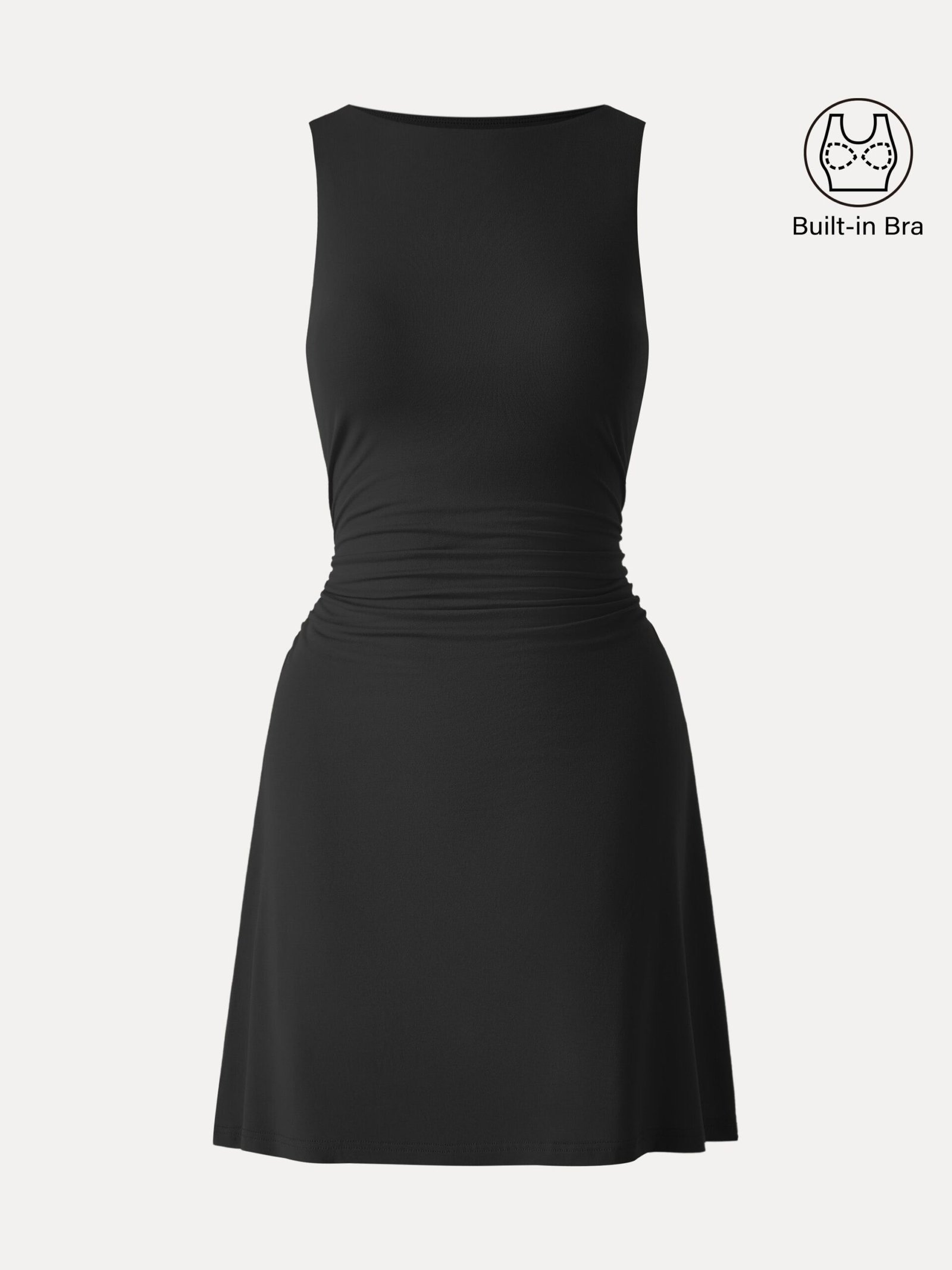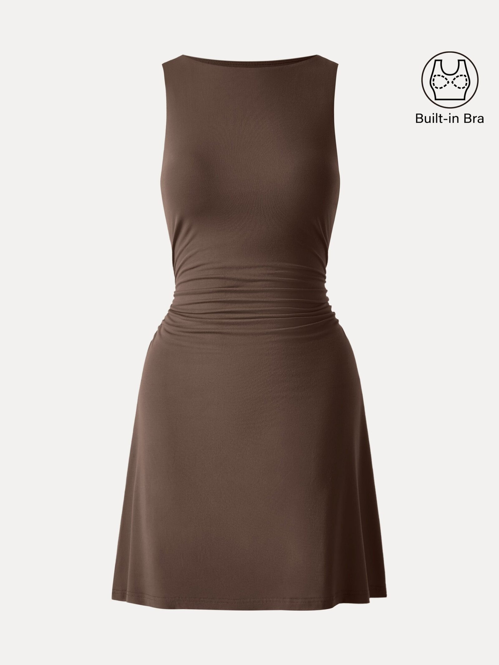 SkinKiss Boatneck Ruched A-line Mini Brami Dress
