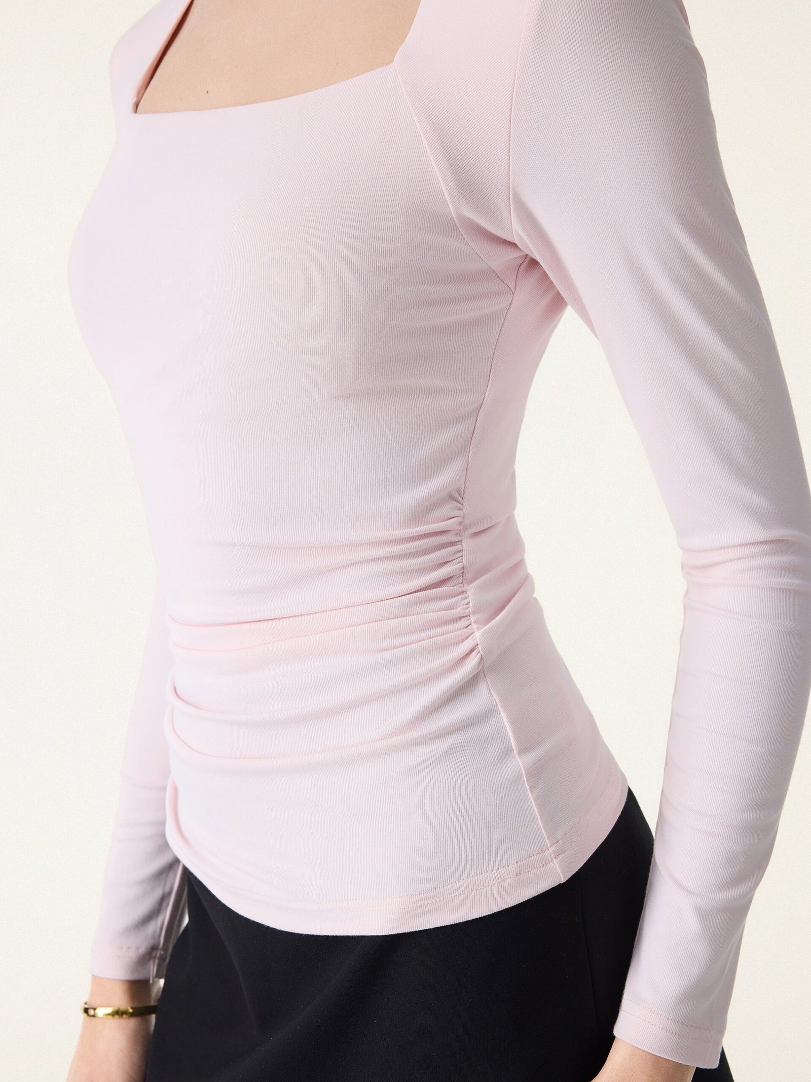 SkinKiss Trapeze Neck Ruched Long Sleeve Brami