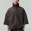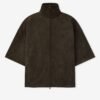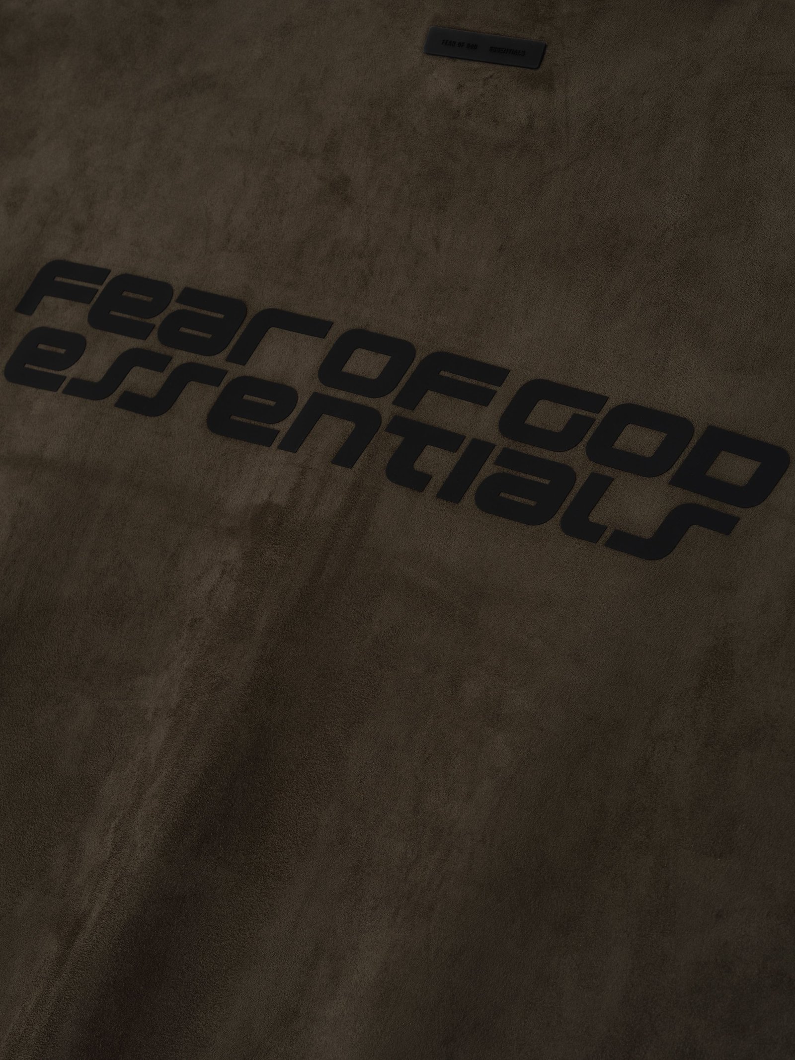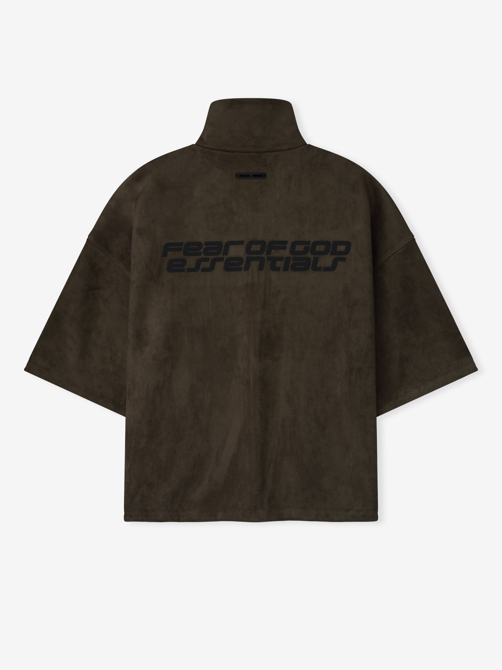 The 3/4 Sleeve Jacket is crafted from bonded suede fleece, offering a plush, suede-like hand feel that complements the modern fit with a wider oversized silhouette. The piece is detailed with an HD-printed “Fear of God Essentials” lockup on the back while finishing touches include a high neck, full zip front, and waist hem bungee toggle for adjustability. A Fear of God Essentials rubberized label stitched at the back.