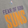 The Suns 90s Tee is cut from 100% cotton jersey, offering a soft yet substantial hand feel. Designed in an oversized 90s-inspired silhouette, it features exaggerated proportions with dropped shoulders for a relaxed drape. The front is defined by a bold puffer-print application of the “Suns Essentials” lockup, alongside the authentic NBA insignia. The Phoenix puffer print logo is across the back and the signature rubberized Fear of God Essentials label at the collar.
