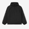 The Half Zip Anorak is crafted from tech nylon-spandex offering both stretch comfort and water repellant functionality. The piece is detailed with an metallic 3M-printed “Essentials ” graphic on the sleeves to enhance its relaxed, rounded silhouette. Additional details include a hood, raglan sleeves, half-zip front, elasticized cuffs and bungee toggles at the waist hem for adjustable styling. A Fear of God Essentials rubberized label stitched at the center front.
