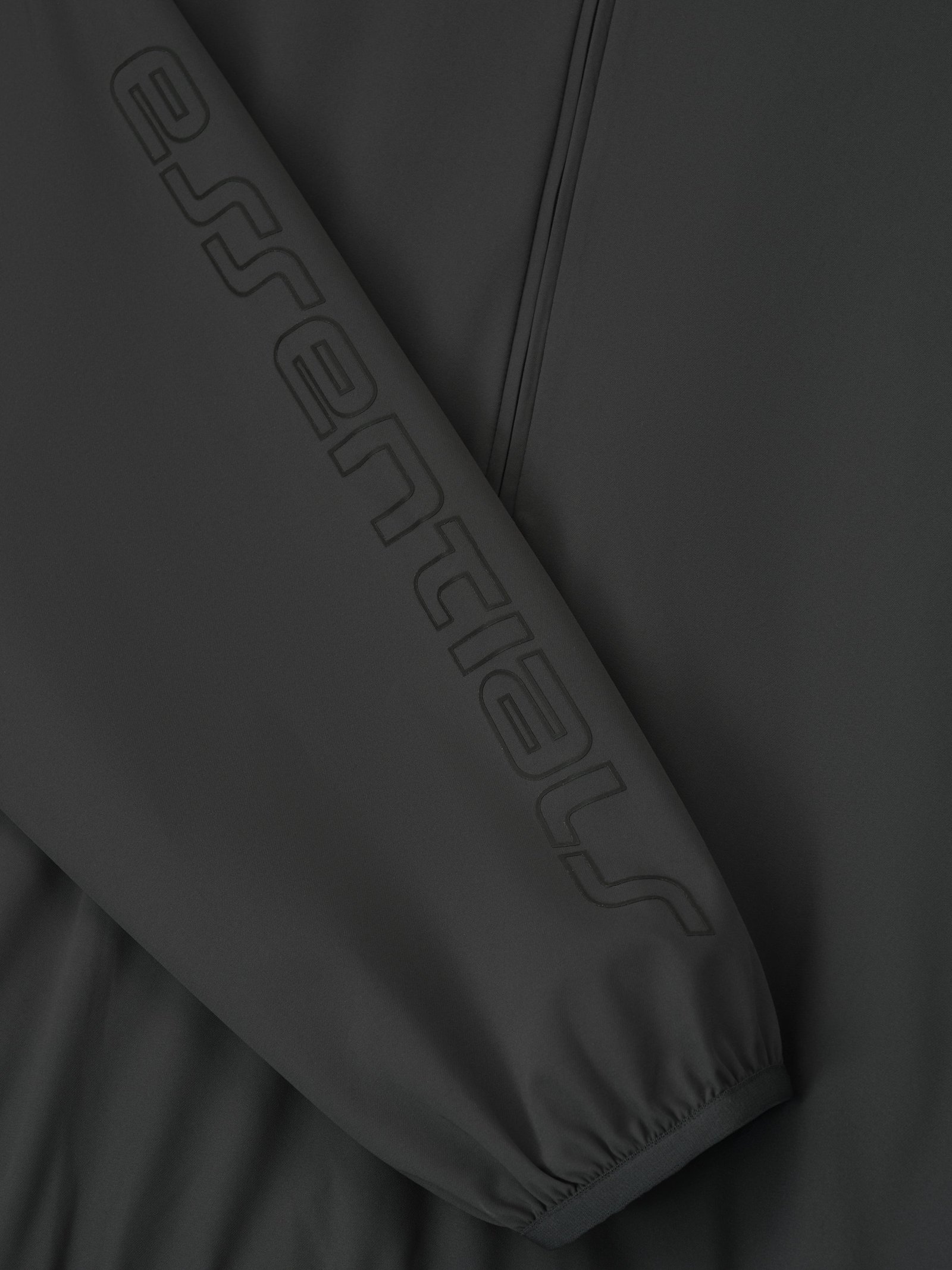 The Half Zip Track Jacket is crafted from tech nylon-spandex offering both stretch comfort and water repellant functionality. The piece is detailed with an metallic 3M-printed “Essentials ” graphic on the sleeves to enhance its relaxed, rounded silhouette. Additional details include a high neck, half-zip front, elasticized cuffs and waist hem. A Fear of God Essentials rubberized label stitched at the center front.