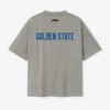 The Warriors 90s Tee is cut from 100% cotton jersey, offering a soft yet substantial hand feel. Designed in an oversized 90s-inspired silhouette, it features exaggerated proportions with dropped shoulders for a relaxed drape. The front is defined by a bold puffer-print application of the “Fear of God Warriors” lockup, alongside the authentic NBA insignia. The Golden State puffer print logo is across the back and the signature rubberized Fear of God Essentials label at the collar.