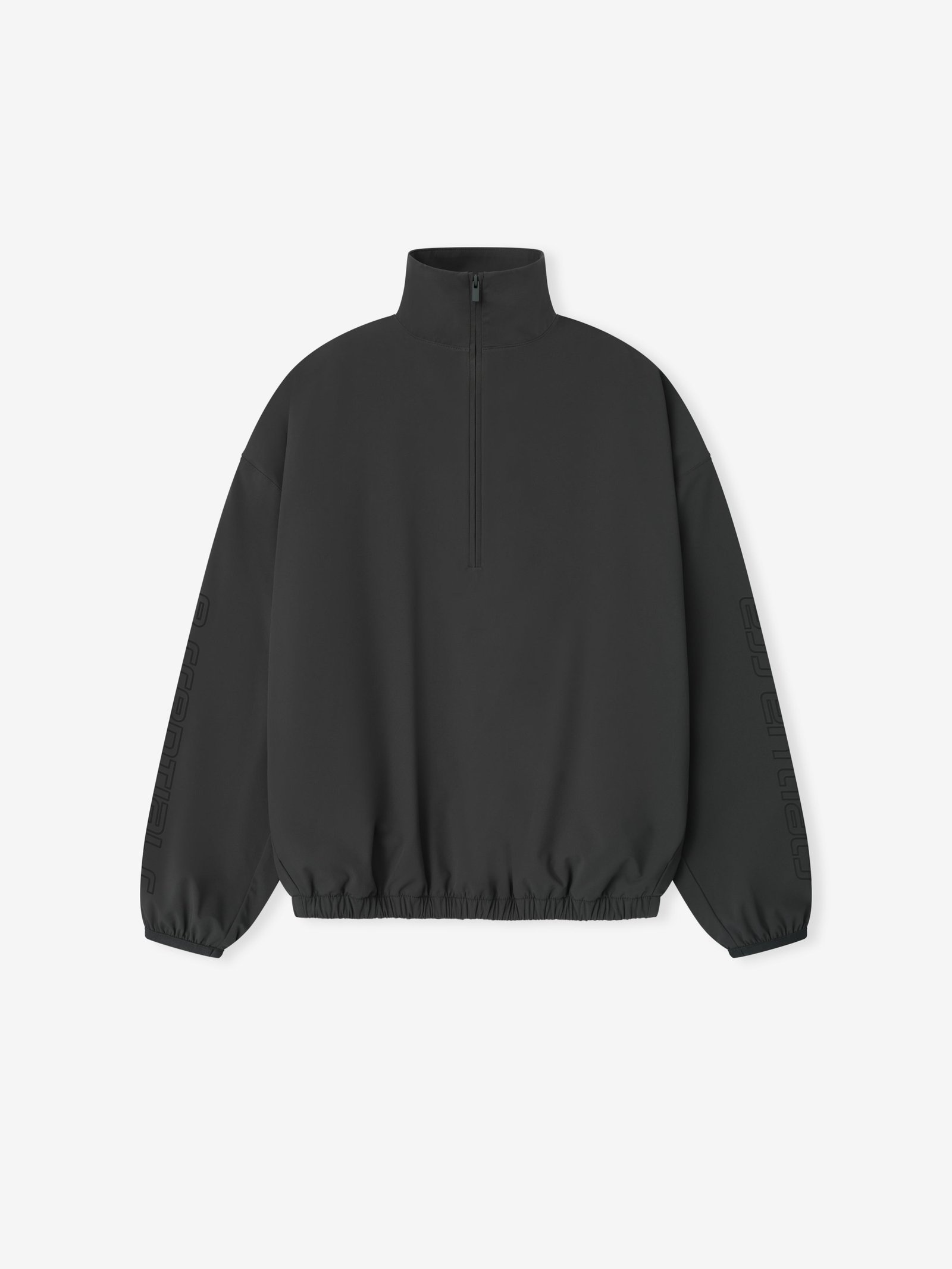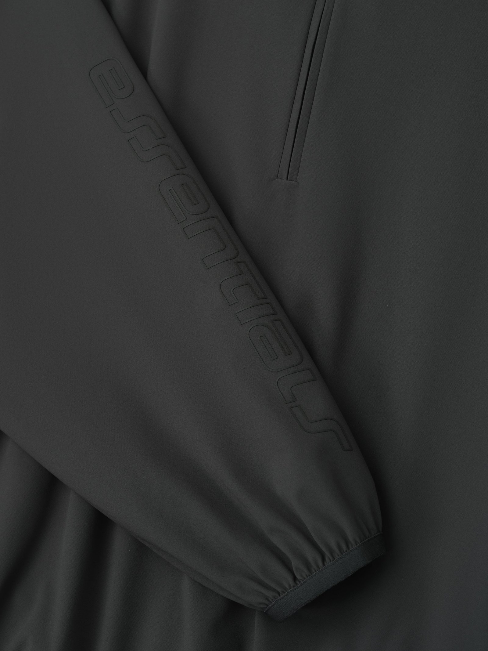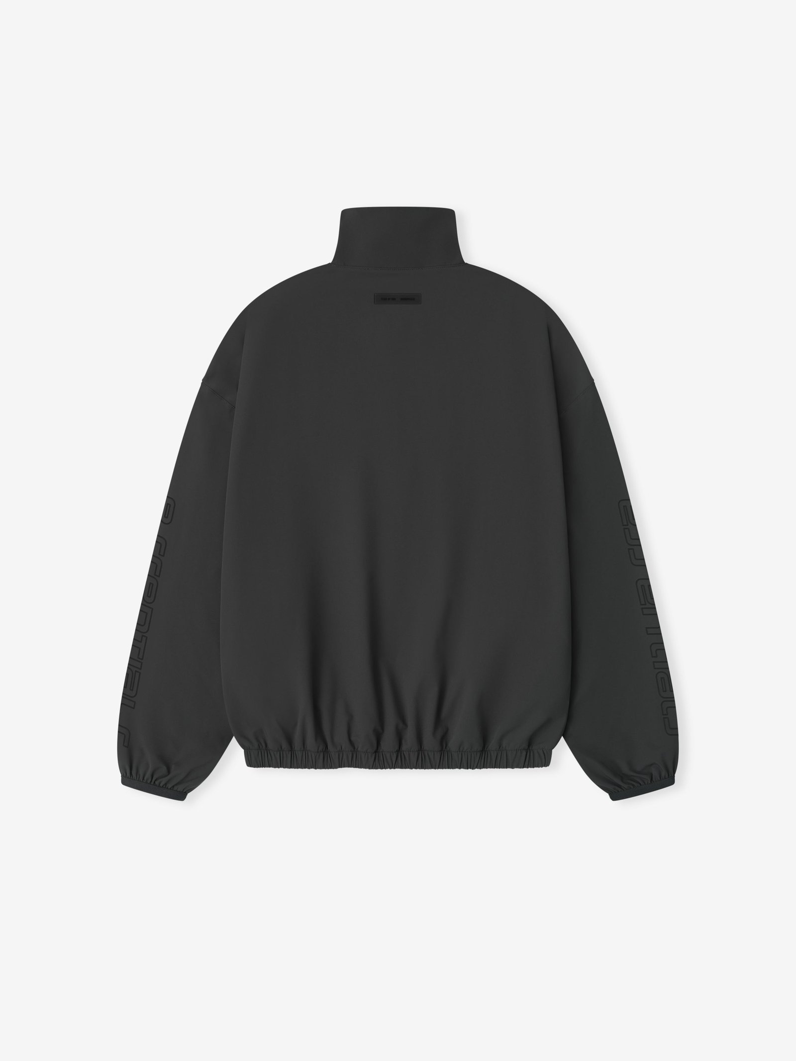 The Women’s Half Zip Track Jacket is crafted from nylon-spandex offering both stretch comfort and water repellant functionality. The piece is detailed with an metallic 3M-printed “Essentials ” graphic on the sleeves to enhance its relaxed, rounded silhouette. Additional details include a high neck, half-zip front, elasticized cuffs and waist hem. A Fear of God Essentials rubberized label stitched at the back.