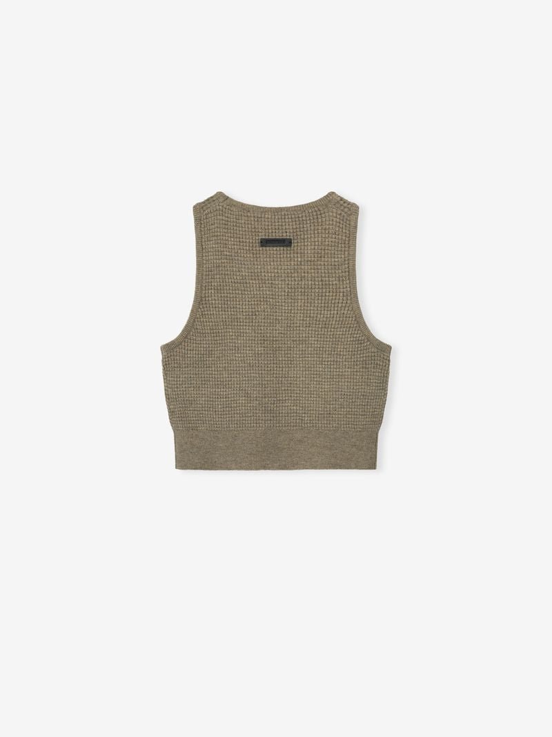 The Women’s Waffle Sport Tank is made from a poly-nylon waffle knit for stretch comfort and textural dimension. The piece is designed to be form fitting, and cropped for stand-alone style or layering. A Fear of God Essentials label is positioned at the back.