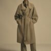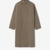 The Highneck Coat is crafted in Italy from luxurious double-faced wool-cashmere, which offers a luxuriously soft touch and an unstructured design that enhances the fabric’s drape. Its double-breasted style features a voluminous body for comfortable layering. Additional details include horn button closures, a chest pocket, side pockets, and a self-fabric belt.